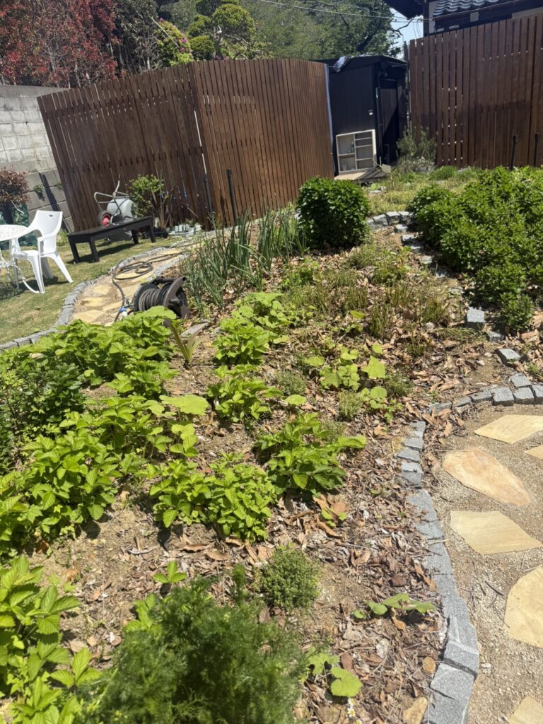 ガーデンでは、カモミールやレモンバームなどのハーブを育てており、