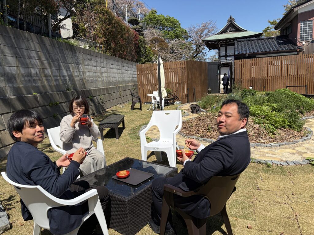 先日の「八の日そば」では、社内スタッフもこの場所でひと休み。