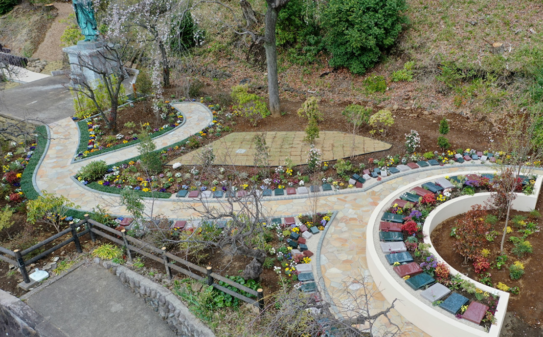 また、元からある木は剪定し、残せるものは樹木葬墓地のシンボルとして活かしました。 樹木葬墓地全体は、見通しが良くなるよう低く設計し、参拝する方が心地よさを感じられるように、緑と花の調和を大切にしました。 - 今後の展望